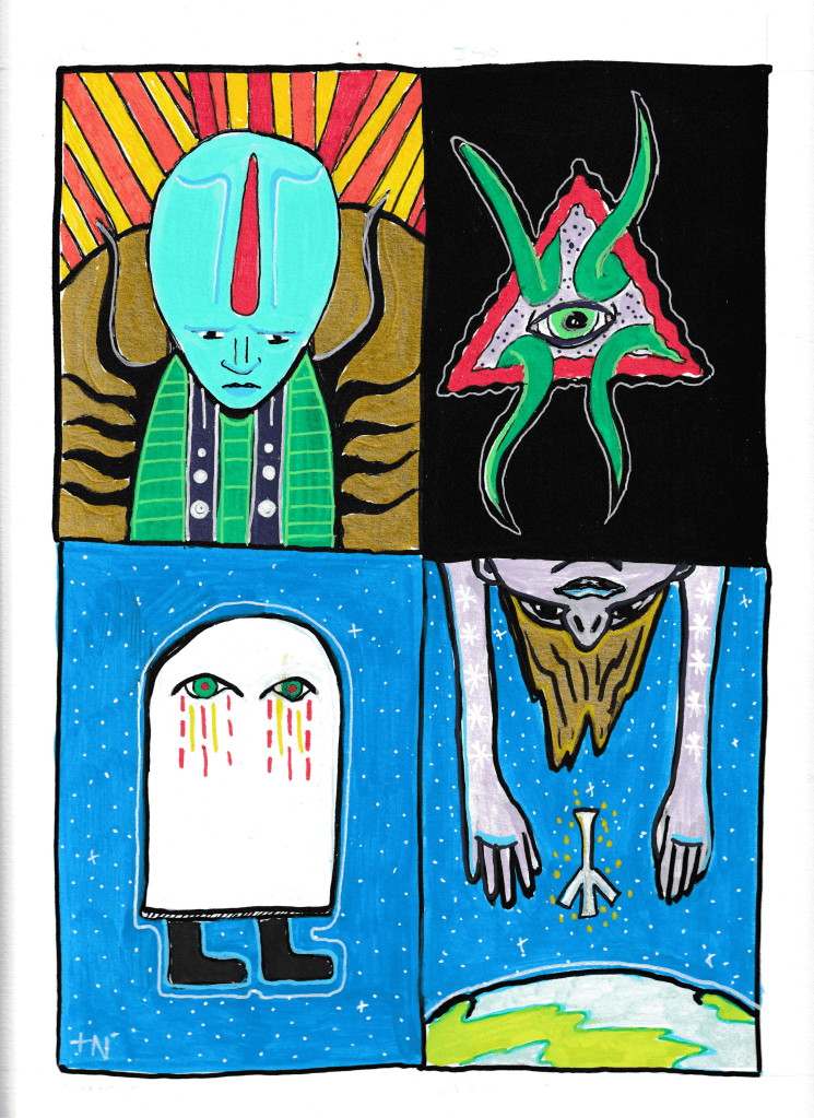 This page serves as the chaotic digital visual Grotto of Solomon Ferguson, a visual artist whose work bridges traditional and digital mediums. The site offers a curated glimpse into Ferguson's artistic journey, showcasing his evolution from acrylic paintings on hardback canvas to explorations in digital art. His pieces often intertwine bold color schemes with symbolic elements, reflecting influences from 1980s cartoon aesthetics, comic book art, and esoteric philosophies.